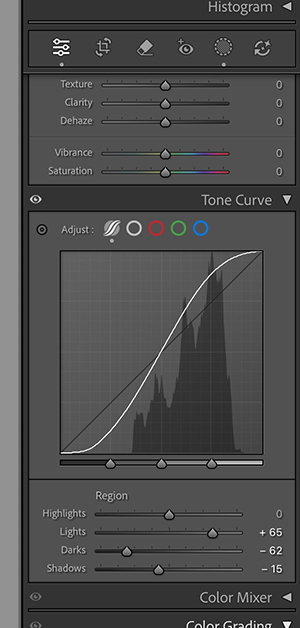 - Locate the Tone Curve panel.