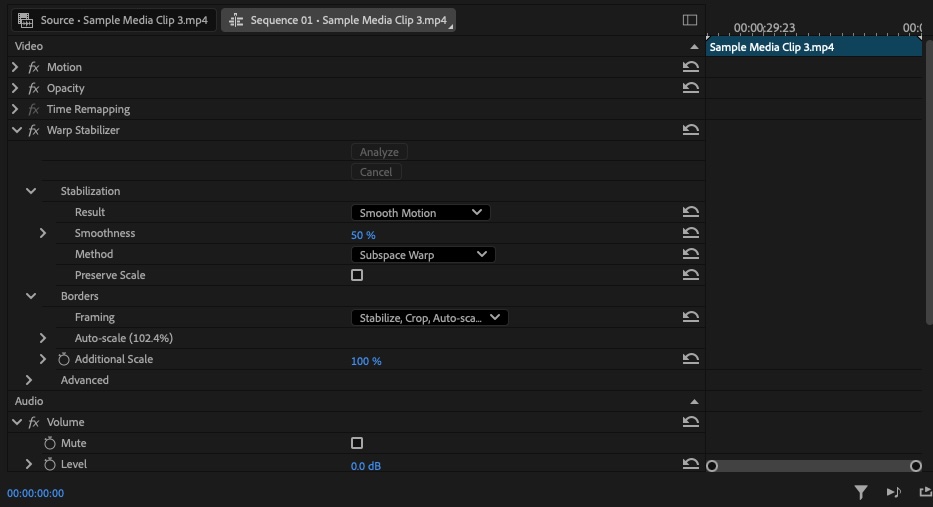 - Fine-Tune Settings: In the Effect Controls panel, adjust Smoothness (default is 50%). Lower values look more natural, while higher values give stronger stabilization.